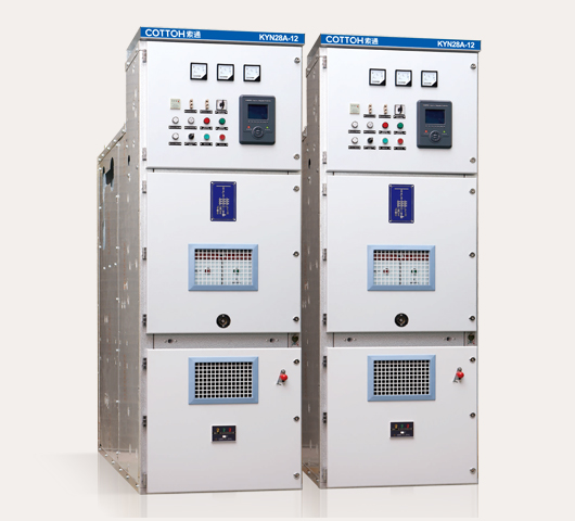 KYN28A-12(GZS1-12)型戶內交流金屬鎧裝中置式開關設備。它適用于三相交流額定電壓12kV,額定頻率50Hz電力系統,用于接受和分配電能并對電路實行控制、保護及監測。